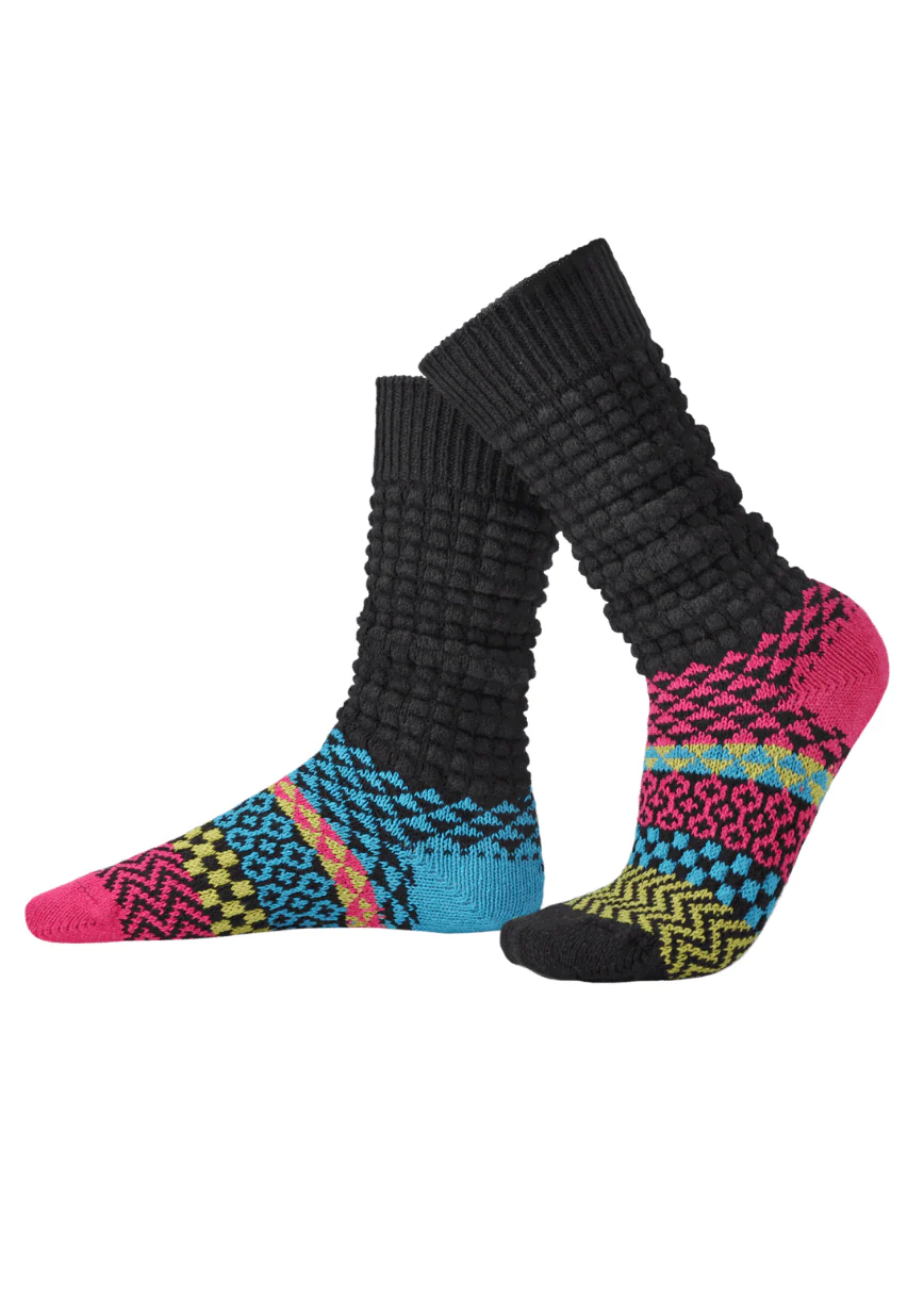 Colors in this sock: Black, Pink, Lime Green, and Blue.
